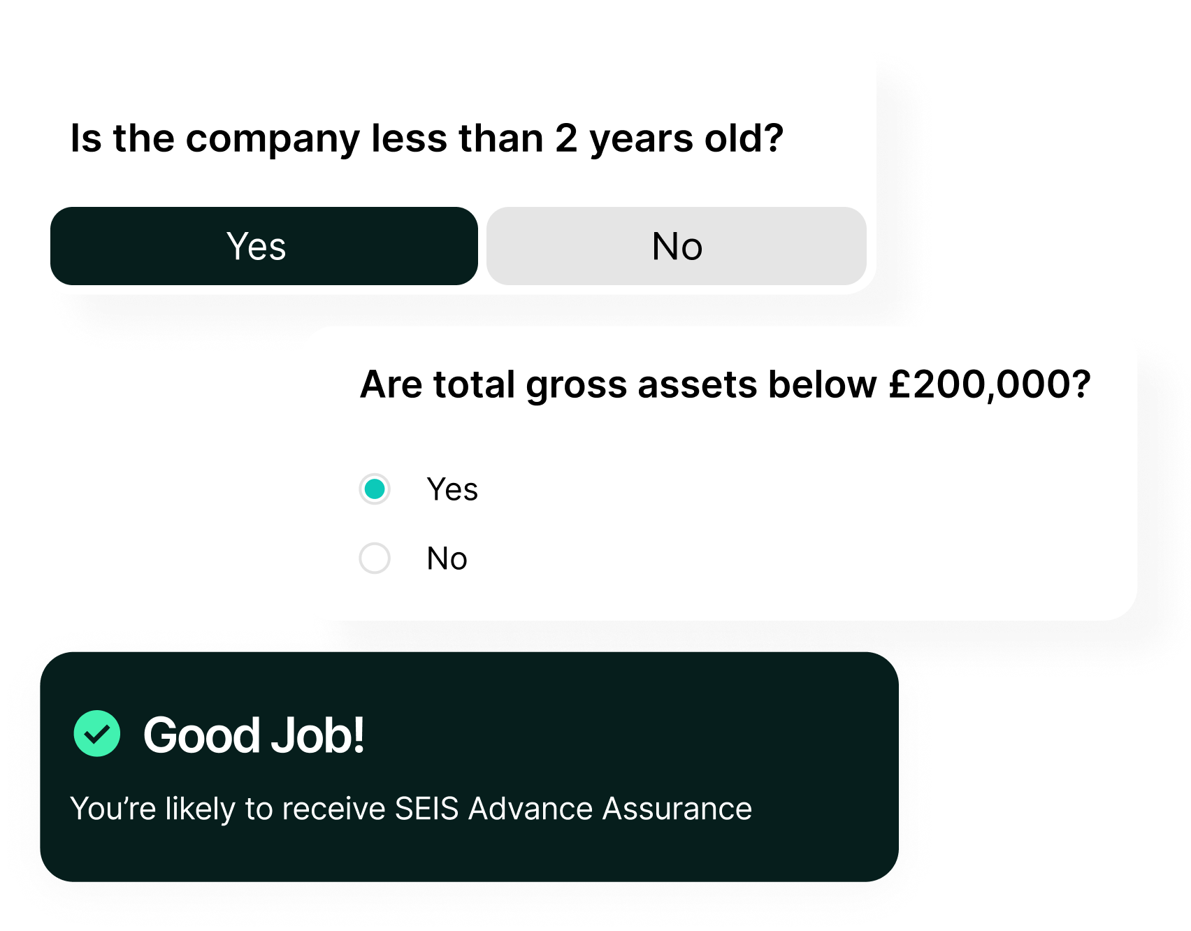 Start with a quick eligibility check — our AI Copilot instantly reviews your company against HMRC’s SEIS/EIS criteria, highlighting any risks upfront. Free, fast, and hassle-free.